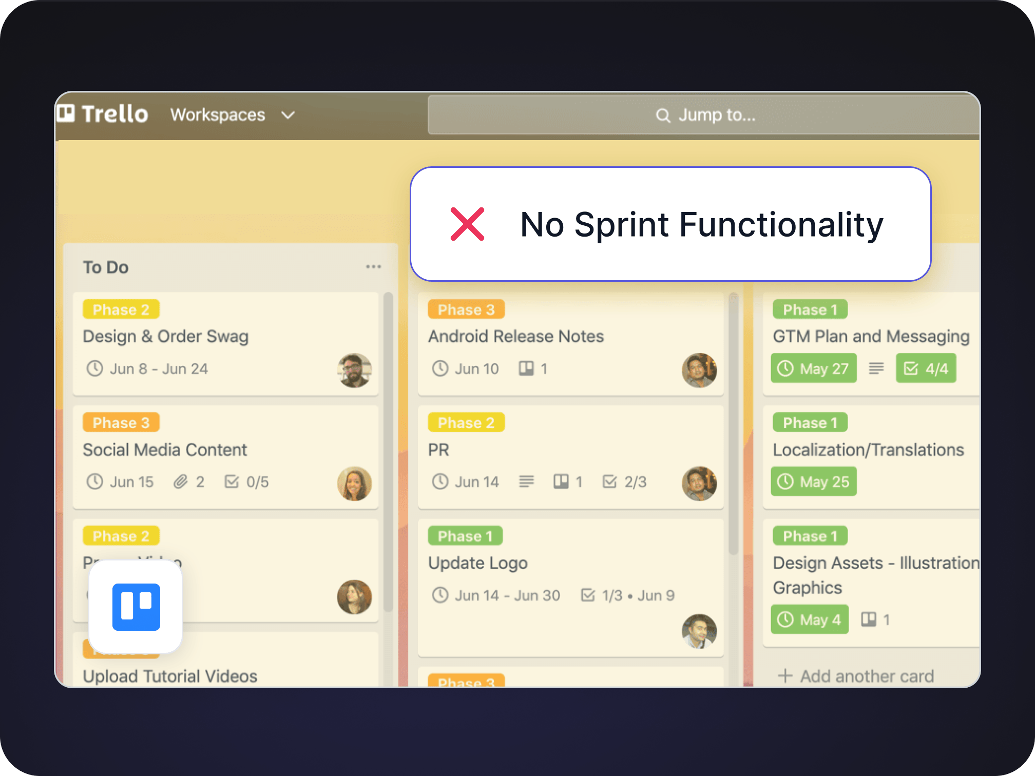 There are way too many functions. I don't find Trello intuitive in any way. Instead, it actually slows down my productivity.