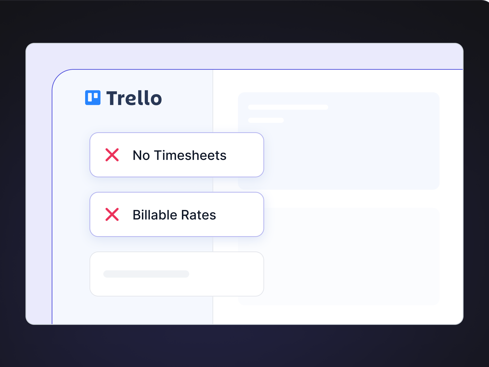 No Timesheets and Billing capabilities